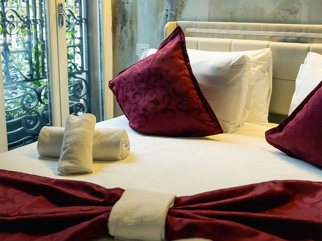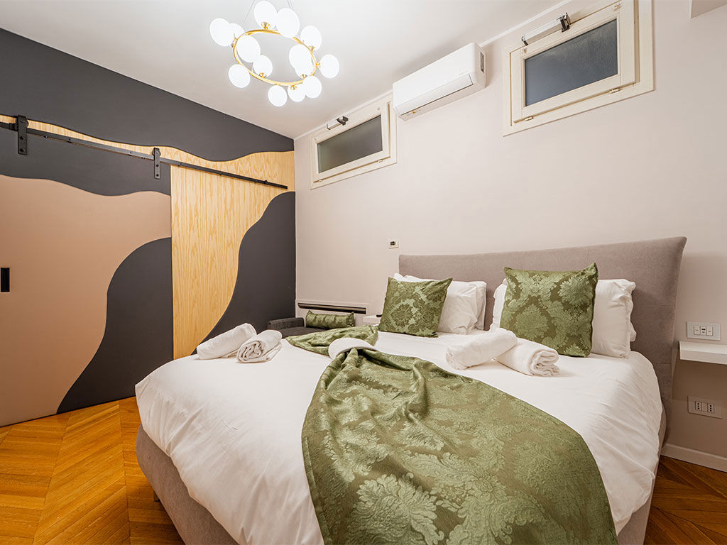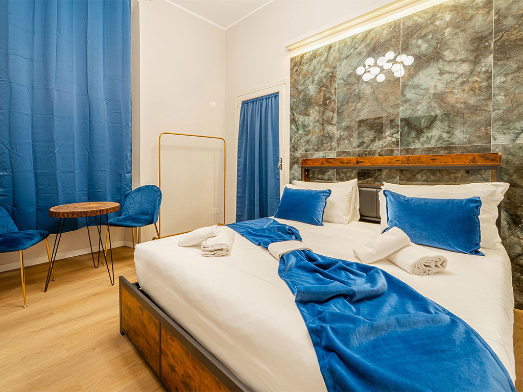 L'Esperienza: Al piano terra la zona notte; al piano superiore un bagno scenografico con vasca, doccia e doppio lavandino, oltre a un salotto privato. La grande finestra di 4 metri si apre sulla terrazza esclusiva con vasca idromassaggio (40°).